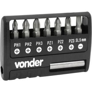 Jogo de bits/ponteiras com 9 peças, encaixe sextavado 1/4″, VONDER 35.38.100.009