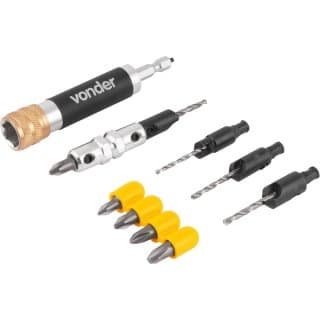 Jogo de bits/ponteiras e brocas escariadoras, 11 peças, encaixe de 1/4″, VONDER 35.38.011.000