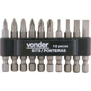 Jogo de bits/ponteiras com 10 peças, encaixe sextavado 1/4″, VONDER 35.38.100.000