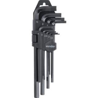 Jogo de chaves hexagonais 1,5 mm a 10 mm, longas, com 9 peças VONDER 35.73.150.100